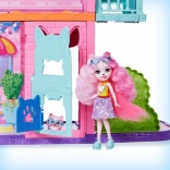 Vstupte do světa ENCHANTIMALS s kouzelným městským domkem o výšce 70 cm a třemi patry plnými herních možností. Čeká na vás kavárna s patio, obývák s kuchyní, ložnice a bazén na střeše, nechybí balkon, požární schodiště a otevírací dveře s dvířky pro mazlíčka. Součástí je panenka Palmer Pomeranian (15 cm), její pejsek Pommy a více než 15 doplňků pro nekonečnou fantazii a kreativní hraní. Více zón hry, bohaté příslušenství a pohádkový design potěší každého malého vypravěče příběhů.