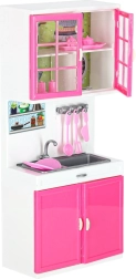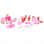 Součástí balení je bohaté příslušenství: hrnce s poklicemi, pánvička, toaster s pohyblivou páčkou, nádobí, hrnky, kelímky, „krabice mléka“, kuchyňské náčiní na háčcích i „kostky ledu“. Otevírací skříňky, vysouvací zásuvka a police učí děti pořádku, rozvíjejí jemnou motoriku a sociální dovednosti.