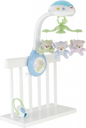 Tři měkcí medvídci-motýly v pastelových barvách se pomalu točí a přináší dětem radost a zábavu přímo nad jejich postýlkou.