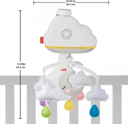 Kolotoč a usínáček Calming Clouds™ od Fisher Price poskytuje klidný spánek vašemu dítěti pomocí pohybu, hudby, zvuků a světel. Pomocí zvukového senzoru se automaticky znovu aktivuje, když dítě vydá zvuk.