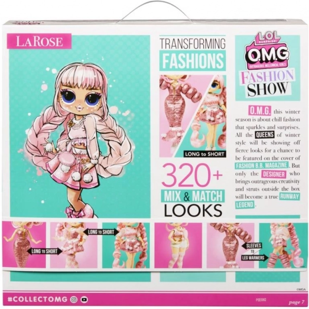 Připrav se na přehlídkové molo s úplně novými panenkami L.O.L. Surprise! OMG Fashion Show Style Velkými ségrami. Nové panenky z této edice – Missy Frost a La Rose – jsou ještě nápaditější a víc rošťácké než kdy předtím! Rozbal limitovanou edici vzorů a doplňků a připrav se na focení detailů! Můžeš vytvořit až 320 různých módních kombinací!