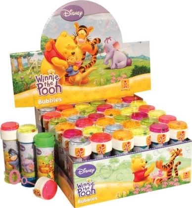 Užijte si spoustu zábavy s bublifukem s motivem MEDVÍDEK PÚ o objemu 60 ml. Barevné víčko ukrývá malou hračku a praktické foukátko, takže je ideální na cesty, oslavy i každodenní hraní.