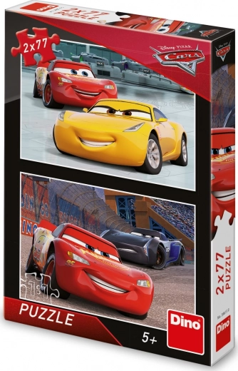 Dvojbalení puzzle CARS 3: dvě skládačky po 77 dílcích z kvalitního kartonu, vyrobeno v ČR. Zábava pro děti, rozvoj zručnosti a soustředění.