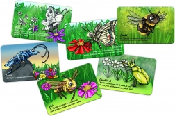 - 31 karet zvířátek, 5 karet kytiček, 4 tkaničky, 1 látkový herní plán, 1 bodovací blok, 1 pravidla, 1 katalog zvířátek