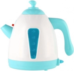 Konvice je navržena jako skutečný kuchyňský spotřebič s elegantním bílým a tyrkysovým barevné provedení.