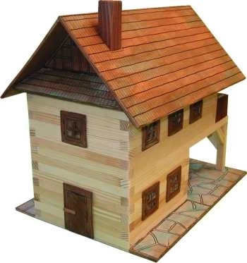 Stavebnice je postavena na dřevěných hranolcích 9×9 mm doplněných o papírové prvky, jako jsou okna, dveře a střešní části. K lepení se doporučuje lepidlo Herkules (není součástí). Přiložené texty z historie lidové architektury přidávají modelu edukativní rozměr a potěší každého, kdo má rád tradice.