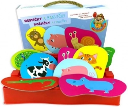- Velké barevné destičky s obrázky, český a slovenský návod, krabice s uchem