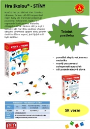 Hra školou – stíny je kreslená naučná hra, ve které děti hledají a skládají dvojice tvořené stínem a odpovídajícím barevným obrázkem. Sestavte všech 24 párů jako puzzle, poznávejte tvary, pojmenovávejte zvířátka a hudební nástroje a povídejte si o nich. Hra roste s dítětem – od jednoduchého přiřazování až po zvídavé otázky a hledání souvislostí.