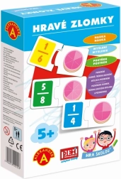 Hra školou – Hravé zlomky je ideální pomůckou pro první seznámení se zlomky. Děti spojují poloviny kartiček – jednu s číselným zlomkem a druhou s obrázkovým znázorněním. Díky tvaru puzzle okamžitě ověří, zda je přiřazení správné, a učí se tak formou hry bez stresu.