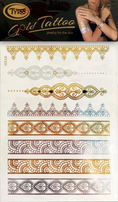 Zlaté tetovací náramky TyToo jsou skutečným šperkem pro vaši pokožku. Snadno a rychle aplikovatelné, vhodné pro různé části těla.