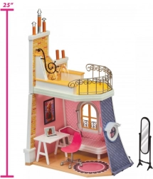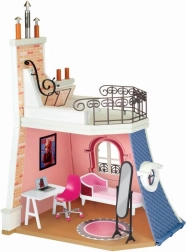 Domeček je vybaven terasou ve druhém patře, zdobenou růžovými stěnami a zábradlím, což přináší další rozměr hry.