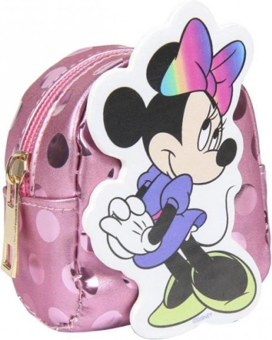 Hravá klíčenka s ikonickým motivem MINNIE MOUSE kombinuje roztomilý design a užitečnost. Mini batůžek s lesklým povrchem a barevnou mašlí nabízí drobný úložný prostor na mince, sluchátka nebo malé poklady. Díky zipu vše bezpečně drží uvnitř.