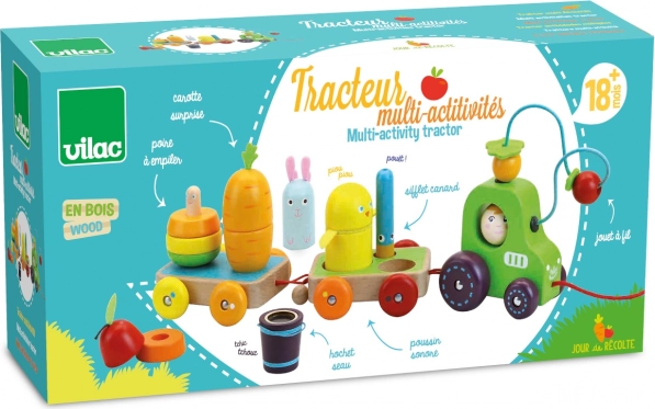 Multifunkční tahací traktůrek Vilac nabízí vašim dětem zábavný a vzdělávací zážitek. Tento dřevěný traktor je plný barevných postaviček a překvapení, které rozvíjí jejich představivost a motoriku.