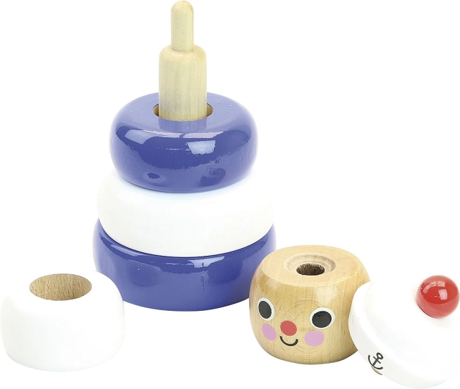 Díky jednoduchému skládání různě barevných dílů podporuje hračka rozvoj jemné motoriky dětí i jejich schopnost rozpoznávat tvary a barvy.
