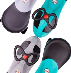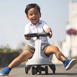 Šedý Didicar je chytré odrážedlo, které se pohybuje bez řetězů, motoru a baterií – stačí otáčet volantem ze strany na stranu. Díky nízkému těžišti, pohodlnému sedlu a stabilní základně je jízda plynulá a bezpečná jak v interiéru, tak venku na asfaltu či betonu. Certifikace pro evropský i americký trh podtrhuje důraz na bezpečnost a kvalitu.