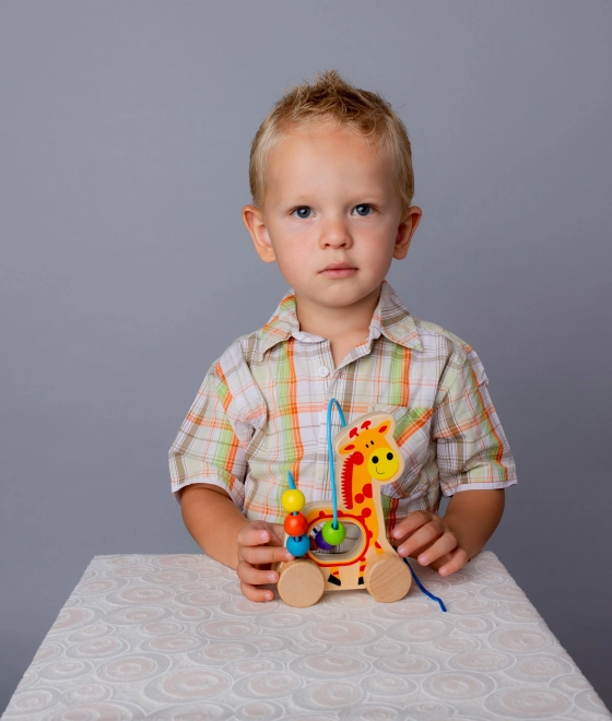 Roztomilá žirafka spojuje tahací hračku a labyrint s korálky v jednom. Podporuje jemnou i hrubou motoriku, učení barev a koordinaci. Díky robustnímu dřevěnému provedení z překližky a masivu je odolná a vhodná pro děti od 12 měsíců.