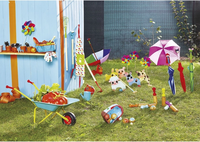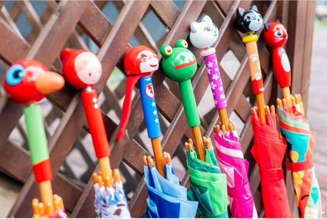 Dopřejte dětem radost z deštivých dnů s veselým deštníkem zdobeným kachničkou. Kvalitní řemeslné zpracování značky VILAC, barevný design a bezpečná konstrukce dělají z tohoto doplňku praktického parťáka na cesty do školky i na hřiště.