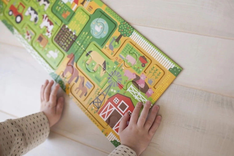 Objevte svět farmy s kreativním setem, který spojuje skládání a zábavnou hledačku. Po sestavení dlouhého puzzle děti sledují cestičky prstem, trénují koordinaci oko–ruka a při tom na obrázku pátrají po 20 předmětech. Ideální aktivita pro společné chvilky s dětmi i samostatnou hru.