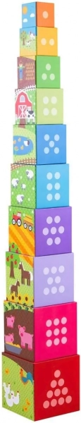 Didaktické kostky s farmářskými motivy pomáhají dětem rozvíjet jemnou motoriku a koordinaci ruka-oko při učení počítání.