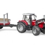 BRUDER traktor MASSEY FERGUSON 7480 s čelním nakladačem a přepravníkem na klády