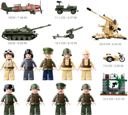 Postavte tank, terénní vůz, letadlo, motorku a dělostřelecké kusy. Realistické detaily a pohyblivé části umožní vytvářet napínavé bojové scénáře.