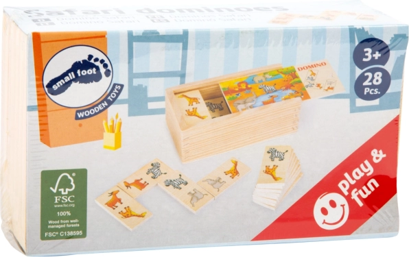 Nechte děti objevovat svět zvířat se stylovým a odolným dominem ze 100% FSC certifikovaného dřeva. Velké dílky se safari motivy jsou ideální pro malé ruce, podporují jemnou motoriku a logické myšlení. Praktický dřevěný box usnadňuje ukládání a přenášení.