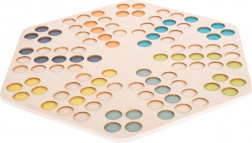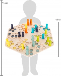 Tato klasická společenská hra v kvalitním dřevěném zpracování je navržena až pro 6 hráčů, takže se do zábavy zapojí celá rodina i přátelé. Velkoformátová deska se snadno přehledně ovládá a barevné figurky s větším průměrem skvěle padnou i do menších či nejistých prstů.