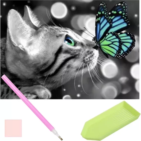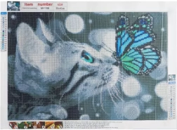 Sada na diamantové malování - kočka s motýlem