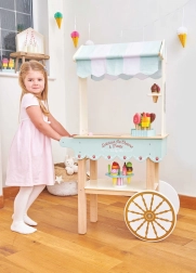 Vozík nabízí posuvné dveře k přihrádce na „led“ s ilustracemi příchutí, dva magnetické kornouty a pohyblivá kola, aby si děti mohly zahrát na zmrzlináře kdekoli. Podporuje sociální a verbální dovednosti, roli hrou rozvíjí fantazii a jemnou motoriku. Hračka získala prestižní ocenění za design, kvalitu a herní hodnotu.