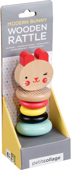 Roztomilé dřevěné chrastítko ve tvaru zajíčka od značky Petit Collage potěší miminka jemným uklidňujícím zvukem. Má pět hladkých bukových prstenů ideálních pro malé ručičky, zářivé barvy a vzory pro rozvoj smyslů a je vyrobeno z 100 % FSC certifikovaného dřeva s netoxickými vodou ředitelnými barvami.