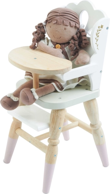 Dřevěná jídelní židlička pro panenky nabízí ideální možnost, jak rozvinout dětskou představivost a zapojit je do her na role. Díky svému stylovému designu s ozdobnými detaily a kvalitním zpracováním poskytuje realistický zážitek. Židlička je vhodná pro plyšáky a panenky až do velikosti 35 cm a skvěle doplní další příslušenství z kolekce Honeybake jako postýlku Sleigh a kočárek Sweet Dreams.