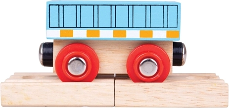 Bigjigs Rail vagón modrý – dřevěný magnetický vagónek s kolejemi
