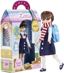 Lottie panenka školačka s doplňky je roztomilá kloubová panenka o výšce 18 cm, která podporuje představivou hru a buduje sebevědomí. Je vyrobená z bezpečného vinylu bez ftalátů, má hebké nylonové vlásky, stojí samostatně, má odnímatelné boty a součástí je batoh, brýle a kartičky s tipy pro leadership. Vhodná od 3 let.