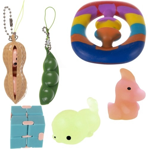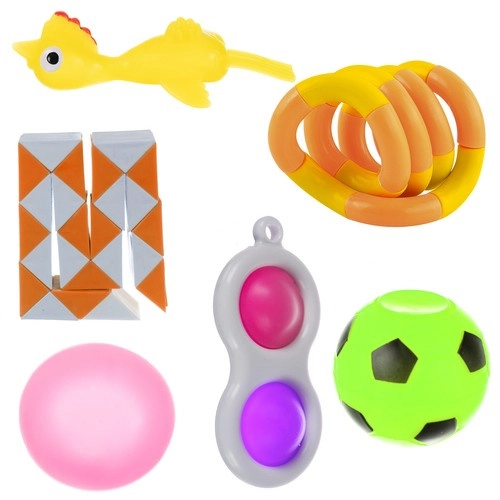 - Senzorické a antistresové prvky – mačkací, natahovací, cvakací, pop-it a další