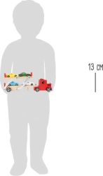 Pozor, nakládá se! Tento robustní dřevěný kamion s auty od značky small foot přepraví až čtyři sportovní autíčka najednou. Má pohyblivou horní plošinu pro snadné nakládání a vykládání, bezpečnostní závoru proti couvnutí a odolné provedení z kvalitního dřeva a kovu – ideální pro malé fanoušky aut a každou dětskou autodráhu.