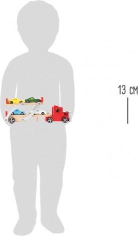 Dřevěný kamion s auty small foot přepraví 4 autíčka. Robustní dřevo, pohyblivá plošina, bezpečnostní závora. Skvělá hračka pro děti od 3 let.