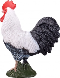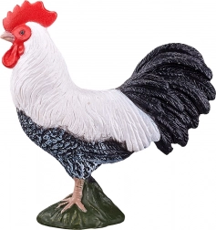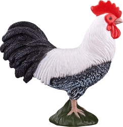 Věrně tvarované peří, kontrastní černobílé zbarvení a červený hřeben pro autentický vzhled kohouta.