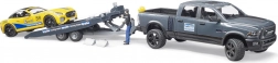 - Terénní pick-up RAM, přívěs, žluté sportovní auto, figurka řidiče, přídavný volant