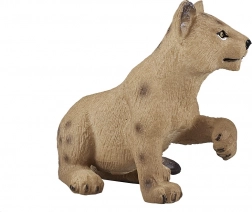 Figurka zachycuje lvíče v přirozené póze s jemnou texturou srsti a autentickými skvrnami typickými pro mláďata.