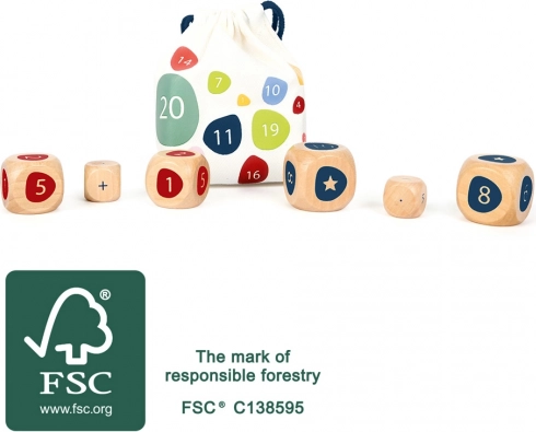 Edukativní počítací kostky small foot z 100% FSC dřeva. 12 ks pro zábavné sčítání, odčítání, násobení a dělení. Nastavitelná obtížnost, vhodné od 6 let.