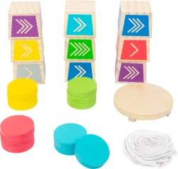 Rodinná venkovní hra ze 100% FSC dřeva pro 2–4 hráče, inspirovaná stylem Kubb. Cílem je shodit vrchní kostku z věže pomocí barevných disků – trénuje přesnost hodu, koordinaci a prostorové vnímání. Ideální pro děti od 5 let a férové soutěžení na zahradě i v parku.