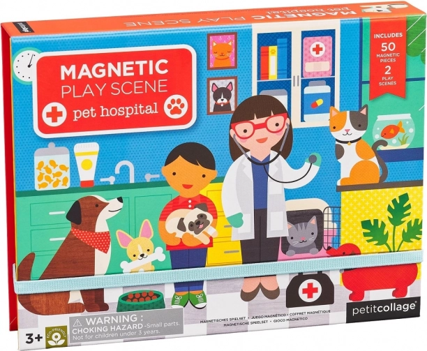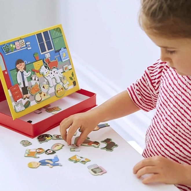 Hledáte perfektní hračku pro malé milovníky zvířat? Magnetická hra: Veterinární klinika je ideální volbou! Tato hra obsahuje dvě magnetické tabulky a 50 magnetických dílků, které umožňují dětem vytvářet vlastní příběhy a scény. Praktická skládací krabička usnadňuje uložení a rychlé uklizení dílků.