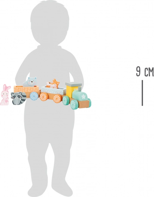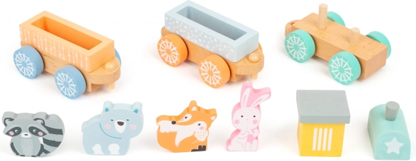Dřevěný vláček s pastelovými barvami a zvířátky