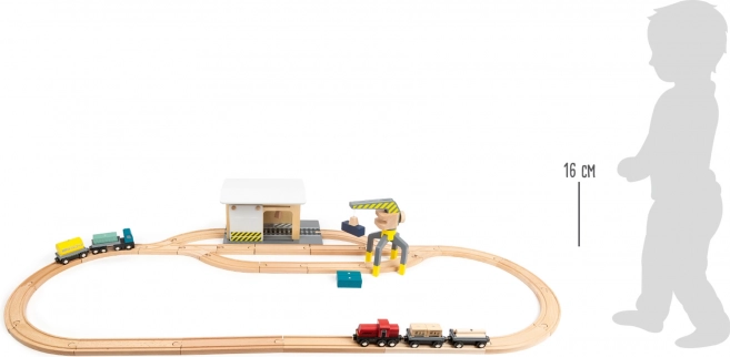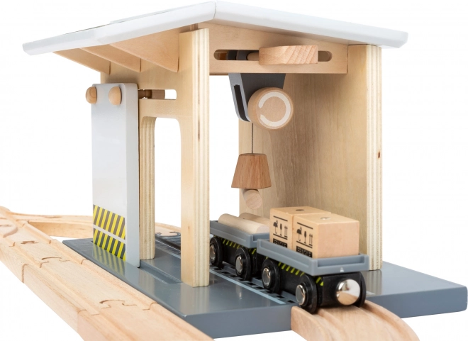 Objevte kompletní dřevěnou sadu pro malou železnici, která je plně kompatibilní s běžnými vláčkodráhami. Děti si užijí realistické nakládání pomocí jeřábu, převoz nákladu a hru v depu. Sada obsahuje až 44 dílů, včetně 25 kolejí, otočného jeřábu 360°, magnetických vagónů a nákladů a posuvné stěny s kladkou. Vyrobeno ze 100% FSC dřeva pro bezpečnou a udržitelnou hru.
