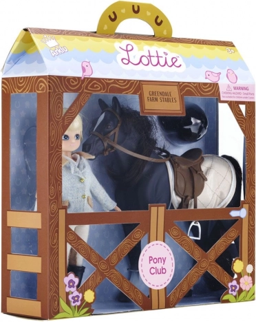 Lottie miluje jezdectví – trénuje dovednosti v sedle i péči o koně. Set zahrnuje vše, co malí jezdci potřebují pro realistickou hru: od jezdeckého oblečení až po sedlo a uzdu. Panenka je navržena v Irsku a oceněná za detailní provedení, díky čemuž je ideální pro hraní i sbírání.