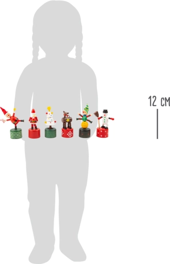 Roztomilé dřevěné figurky s motivy Vánoc, které se po stisknutí tlačítka v podstavci rozvlní sem a tam. Perfektní jako vánoční dekorace i malý dárek do adventního kalendáře. V sadě najdete různé postavičky, například Santa nebo sob Rudolf. Kvalitní zpracování ze dřeva a látky, výška cca 12 cm.