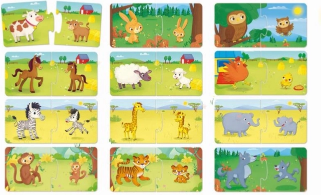 Zábavná vzdělávací hra pro nejmenší: spárujte zvířecí maminky s jejich mláďaty a rozvíjejte dětské myšlení. Obsahuje 24 dílků, vyrobeno z bezpečných materiálů, vhodné pro děti od 1 roku. Skvělá volba pro podporu logiky, jemné motoriky a vizuálního vnímání.