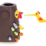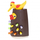 Vyzkoušejte přesnost pomocí magnetického zobáčku, který pomáhá chytit pestré červíky ze stromu.