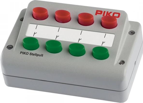 Analogový ovládací panel od Piko umožňuje jednoduché a efektivní ovládání světel a výhybek na vašem modelovém kolejišti. Je vybaven čtyřmi dvojtlačítkovými přepínači, které vám umožní přehledně řídit různé výstupy, od světel až po výhybky.