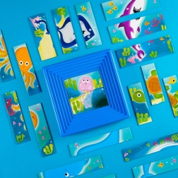 Objevte zábavnou sadu pro nejmenší: progresivní dětské puzzle CAROTINA Baby se 8 sadami puzzlů s rostoucí obtížností. Díky speciální podložce je skládání i ukládání dílků snadné, velké a odolné kartonové dílky jsou bezpečné pro děti od 1 roku. Tématika mořského světa rozvíjí jemnou motoriku, logické myšlení a vizuální vnímání.